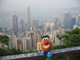 Vandaag hopen we opnieuw op mooi weer, want we willen het topje van hongkongeiland bezoeken. We willen naar de Peak. Daar kunnen we een fantastisch uitzicht hebben over het eiland. Na snel wat lekkere broodjes gescoord te hebben gaan we op weg. Het is wel even passen en meten, maar iedereen past in de tram en anders is er over 10 minuten weer een. Terwijl wij lekker achterover hangen en naar buiten besluit Paul foto's te maken. Maar niet voor lang, de tram baan wordt gevaarlijk steil, te steil. En o jee de buggy slaat over de kop. Alles wat erin zat valt eruit. Paul als de wiedeweerga dat ding vasthouden en als vanzelf brengen onze medepassagiers de verloren spullen weer terug naar voren.
